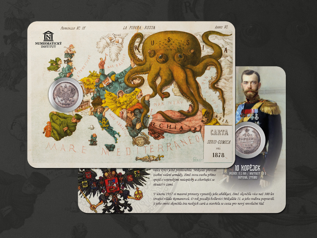 Numismatické kartičky spojují skutečné historické mince s atraktivní grafikou a příběhem své doby. Každá mince je bezpečně uložena v kapsli a zasazena do designové kartičky s ochranným UV tiskem. Více se o našich kartičkách můžete dočíst zde.