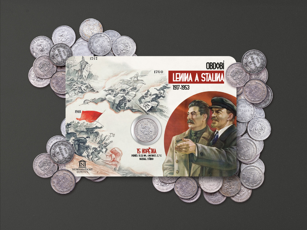 Mince 15 kopějek z let 1922–1923 pochází z dramatického období, kdy se rodil Sovětský svaz a bolševická revoluce vstupovala do nové etapy. Lenin byl již těžce nemocný a jeho vliv slábl, zatímco Josef Stalin začal upevňovat svou moc a připravoval cestu k diktatuře, která poznamenala celé 20. století. Tato stříbrná mince je svědkem okamžiku, kdy se Rusko měnilo v totalitní stát a kdy jediný rok rozhodoval o budoucnosti milionů lidí. Kartička připomíná dobu, kdy se na troskách carské říše formovala nová, neúprosná moc.