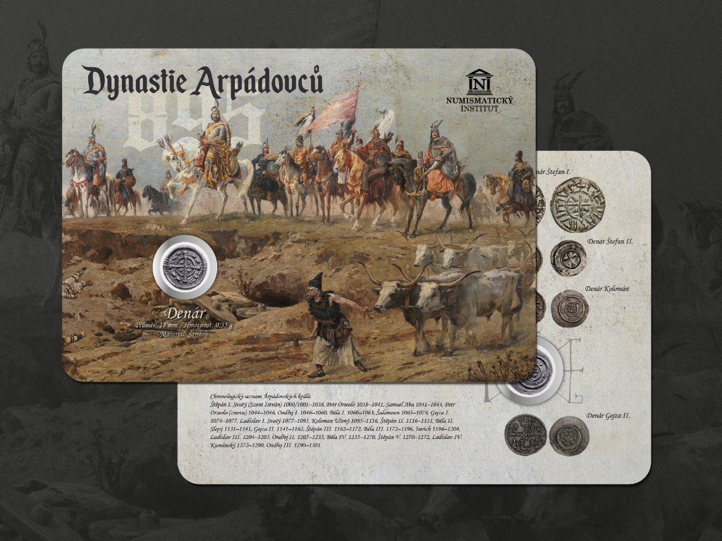 Numismatické kartičky spojují skutečné historické mince s atraktivní grafikou a příběhem své doby. Každá mince je bezpečně uložena v kapsli a zasazena do designové kartičky s ochranným UV tiskem. Více se o našich kartičkách můžete dočíst zde.