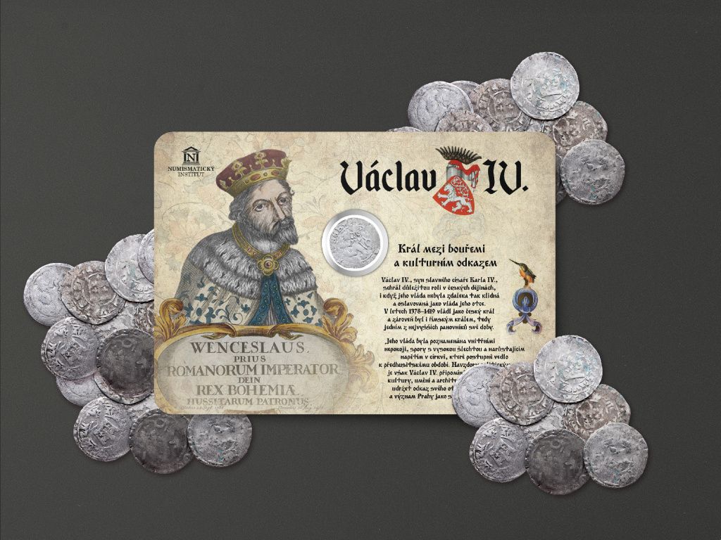 Pražský groš - Václav IV. - historická mince v numismatické kartičce
